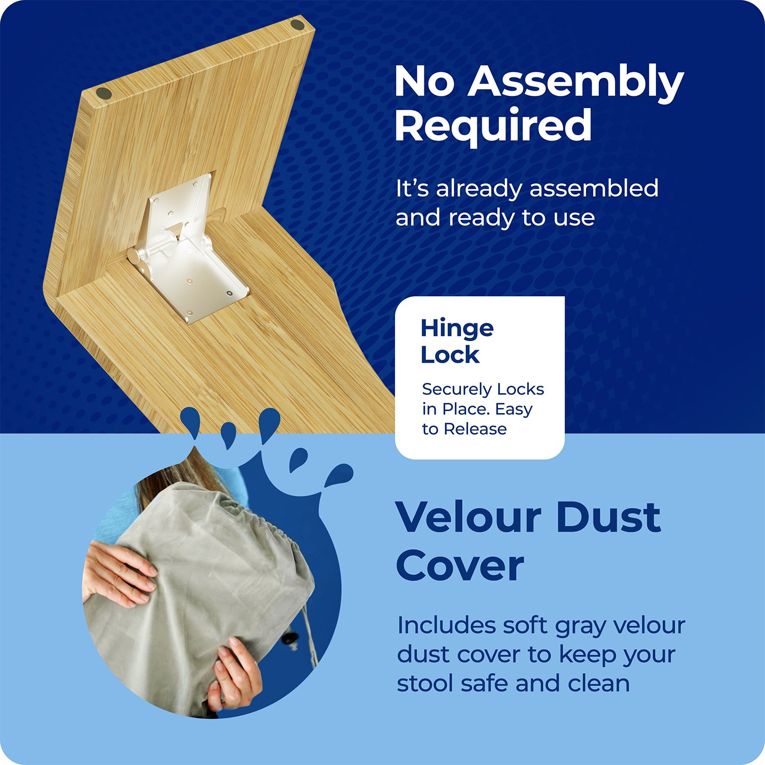 Our convenient folding design maximizes space in your bathroom. It fits perfectly beneath your toilet or can be easily collapsed to stow elsewhere so you can POOP BETTER®!